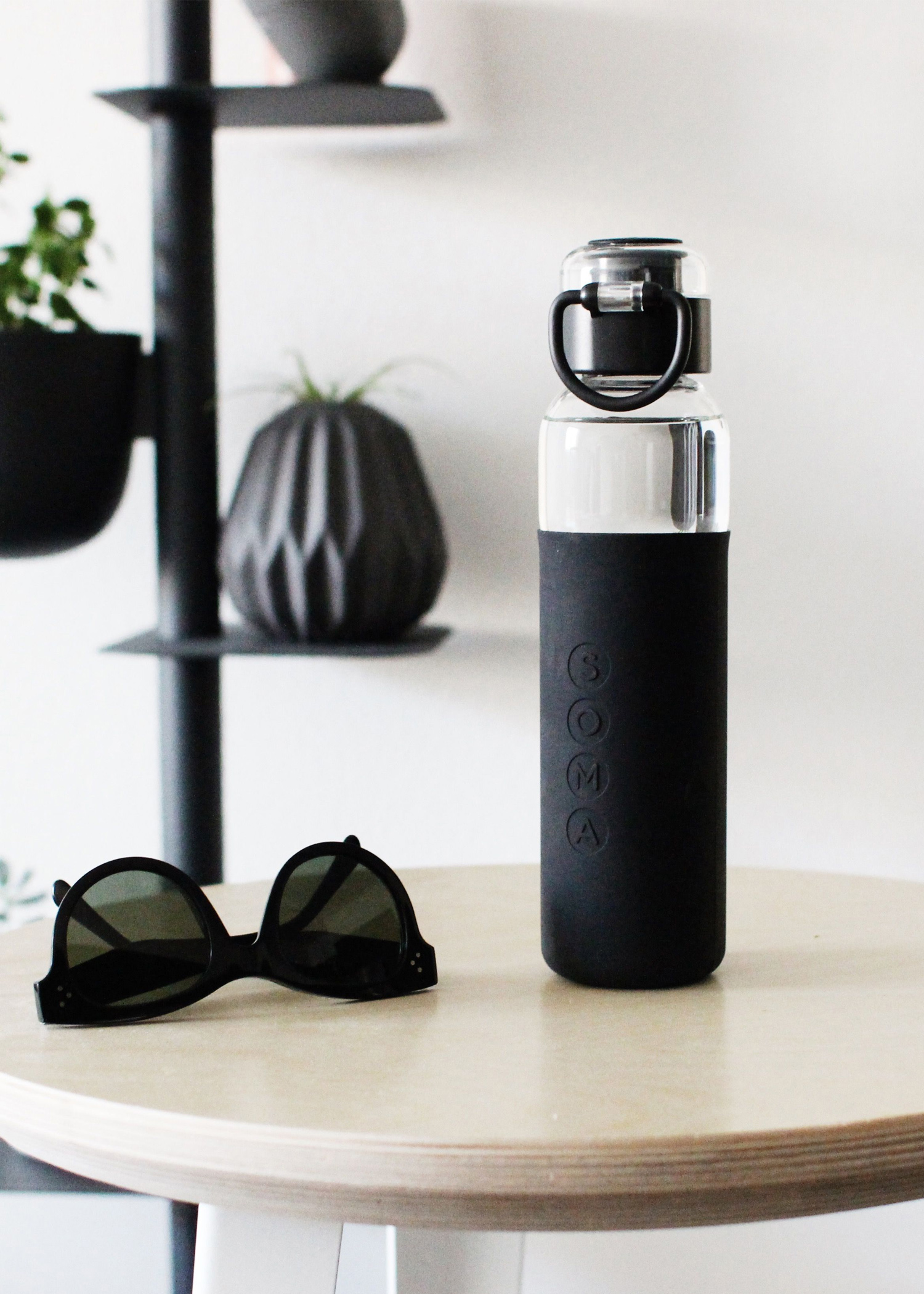 This sleek, glass water bottle is designed for convenient, on-the-go hydration. The smooth, ergonomic bottle is easy to carry and features a one-push drinking method and a leakproof lid.