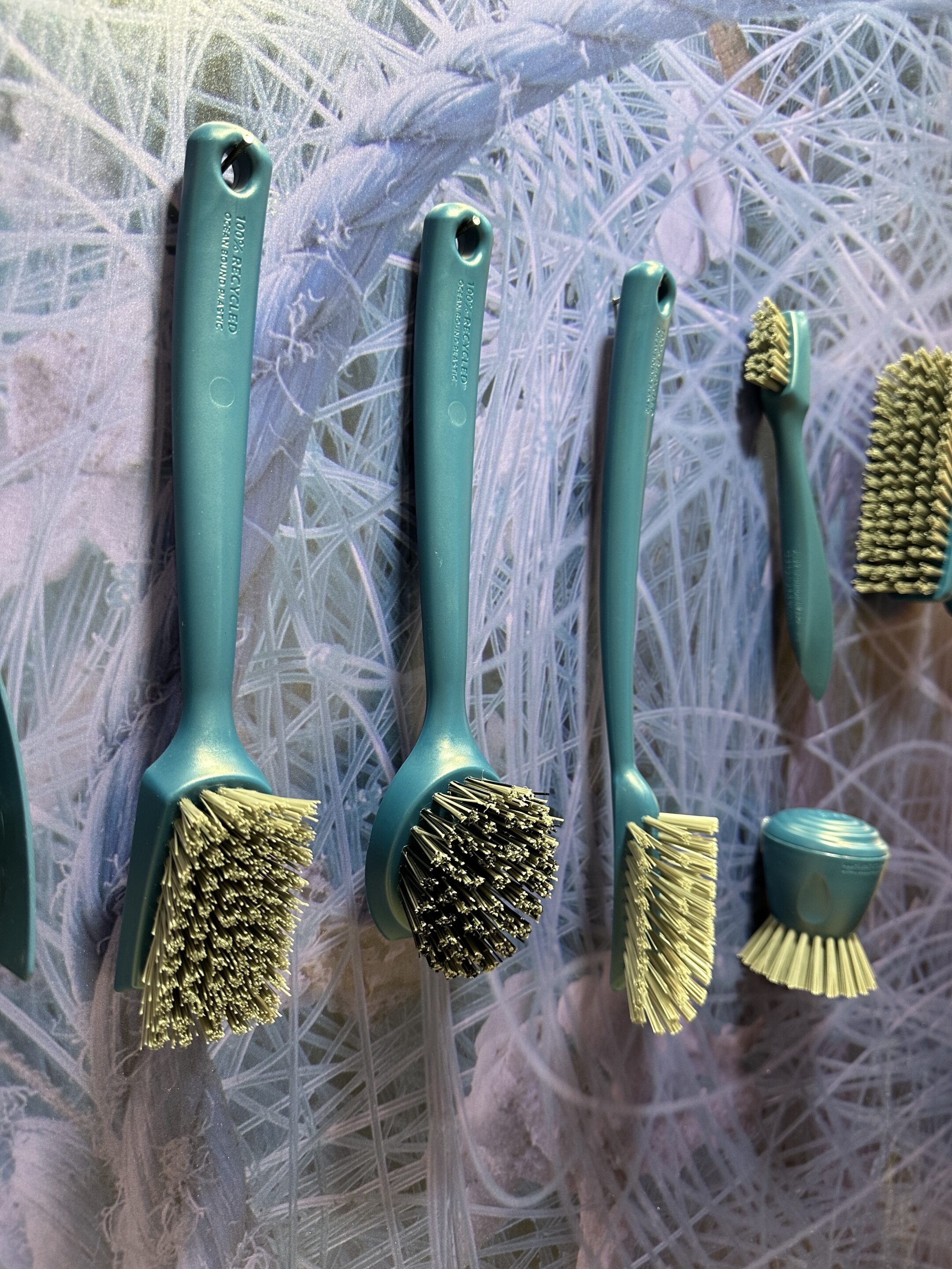 - Cleaning tools from Full Circle made entirely from recycled fishing nets recovered from oceans.