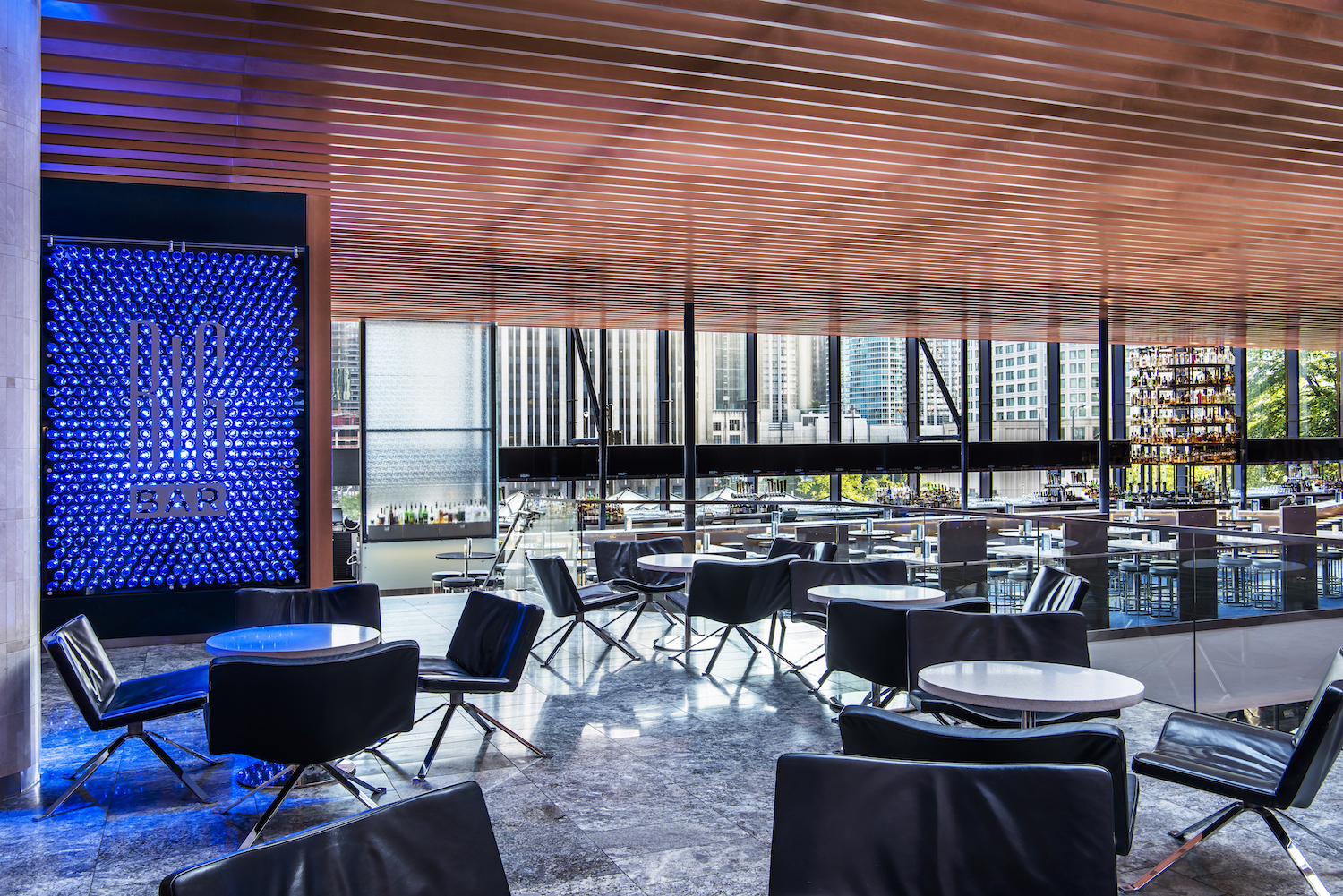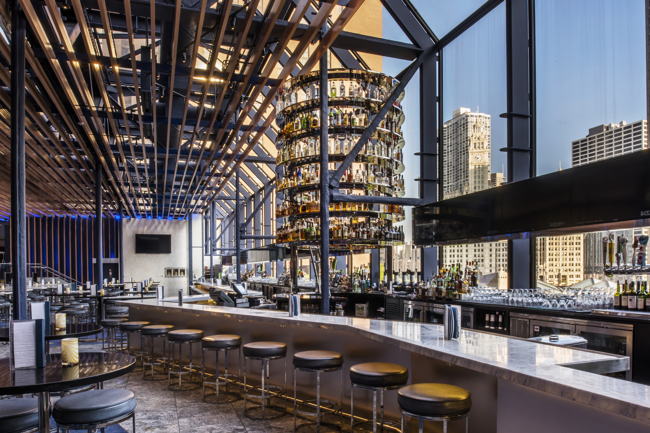 Our upscale mezzanine-level lounge, BIG Bar features stunning views of downtown Chicago and the continent’s longest free-standing bar.