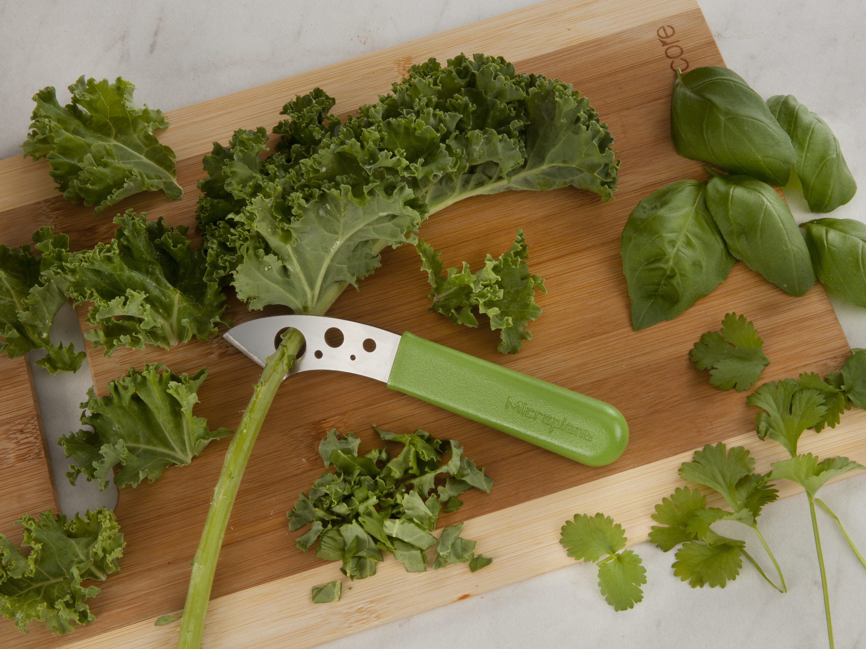 And definitely consider featuring products that help shoppers prep, cook and serve the bounty of the season. Think paring knives, cutting boards, canning sets and specialty items such as cherry pitters or this herb and leafy green stripper from Microplane.