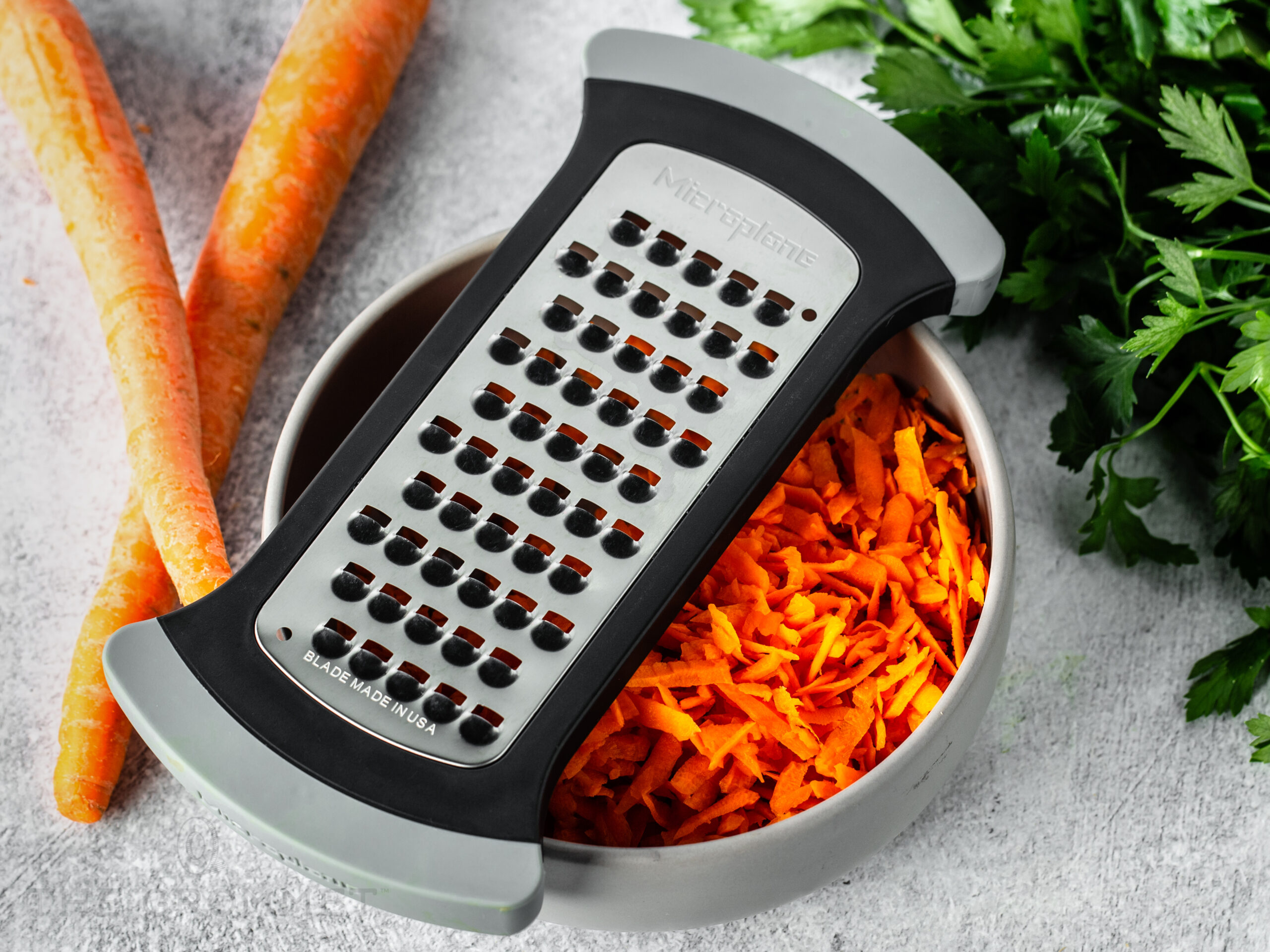 This bowl grater from Microplane features an ultra-sharp blade made for “ricing” vegetables such as cauliflower, broccoli and carrots or grating potatoes and soft cheese. The bowl is optimized to fit any size mixing bowl for grating with less mess.