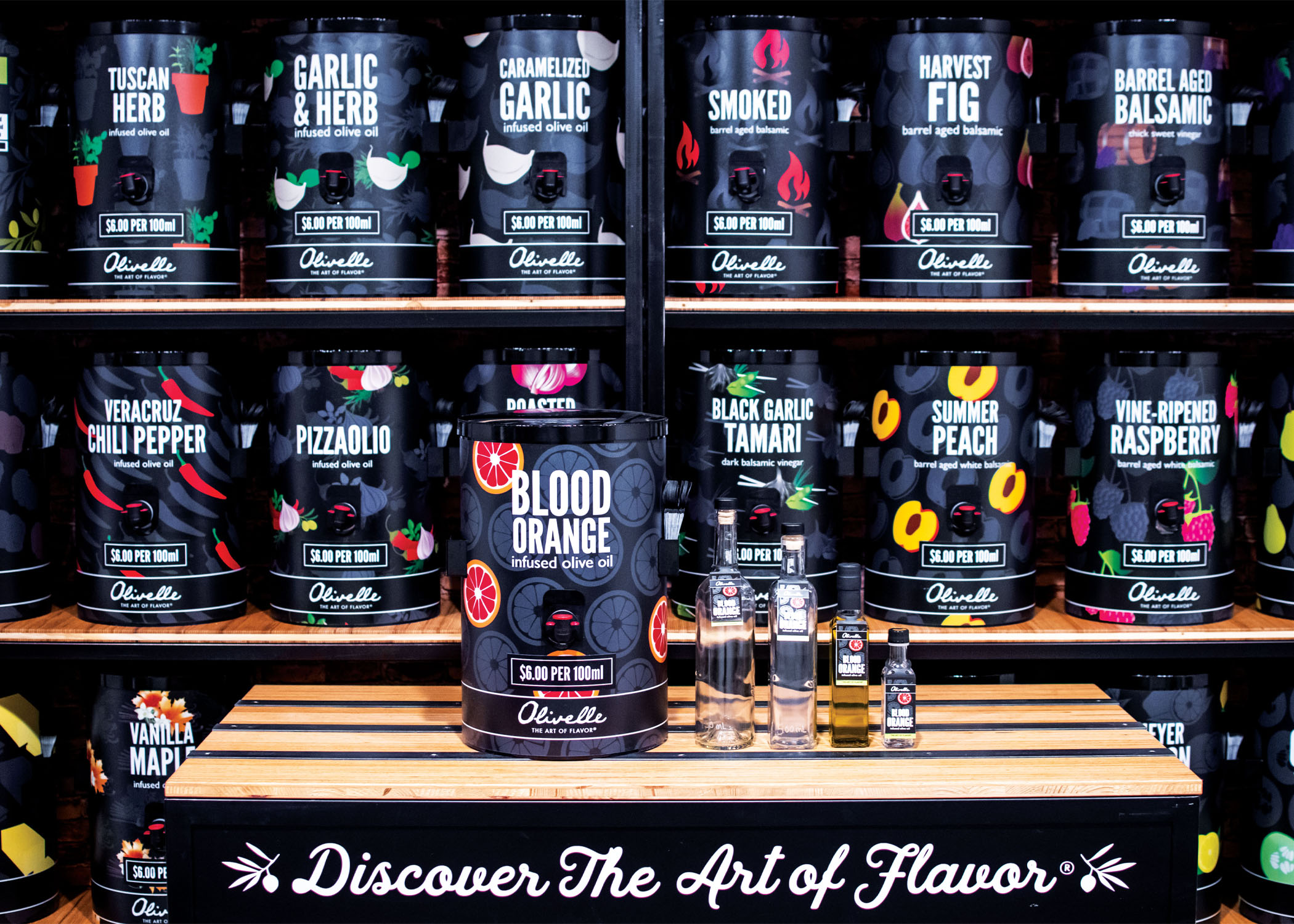 Olivelle’s infused oils and vinegars are offered in a canister dispensing system to help specialty retailers open bulk bars. The on-tap concept is designed to deliver enhanced freshness and authentic flavor while preventing contamination and protecting the delicate products from the damaging effects of oxygen, light and heat.