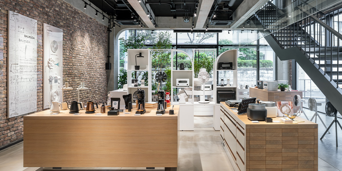 A store by the Japanese kitchen and household electrics brand BALMUDA, BALMUDA Aoyama is a showcase of all the company’s products, as well as the stories and philosophies behind them. Taking inspiration from old European architecture, the store's walls are paved with vintage bricks. There are also arches reminiscent of the waterways in Kyoto’s Nanzenji Temple. The goal is to provide a shopping experience with peace of mind. All the products can be tested in a lounge-like, relaxed setting. To further enhance the experience, there are tasting opportunities, workshops and special events throughout the year.