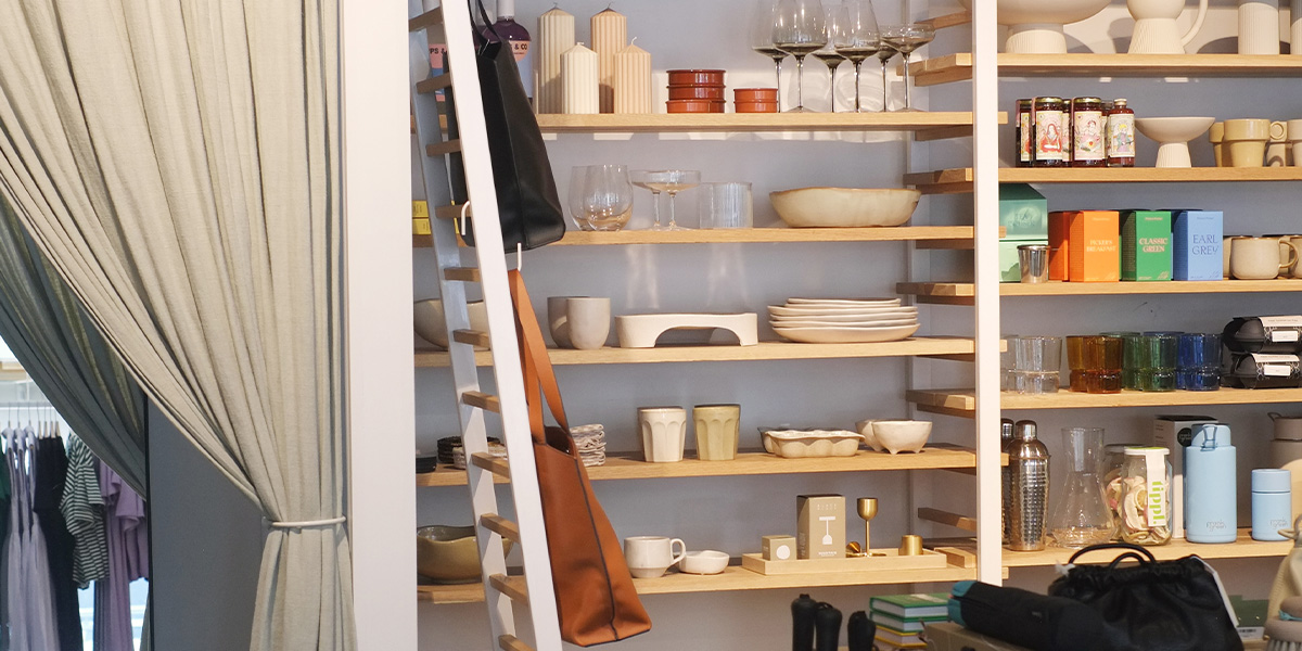Founded by mother and daughter Mary and Kate Masterson, The Kitchen Whisk is a specialized kitchen shop supplying kitchenware, from tableware to special kitchen tools, for enthusiastic home cooks and cookery students, as well as experienced chefs. The product offering is divided into cookware on the ground floor and tableware and barware on the first floor. With a warm and bright feel throughout, the overall style of the store is similar to a traditional kitchen with modern touches.