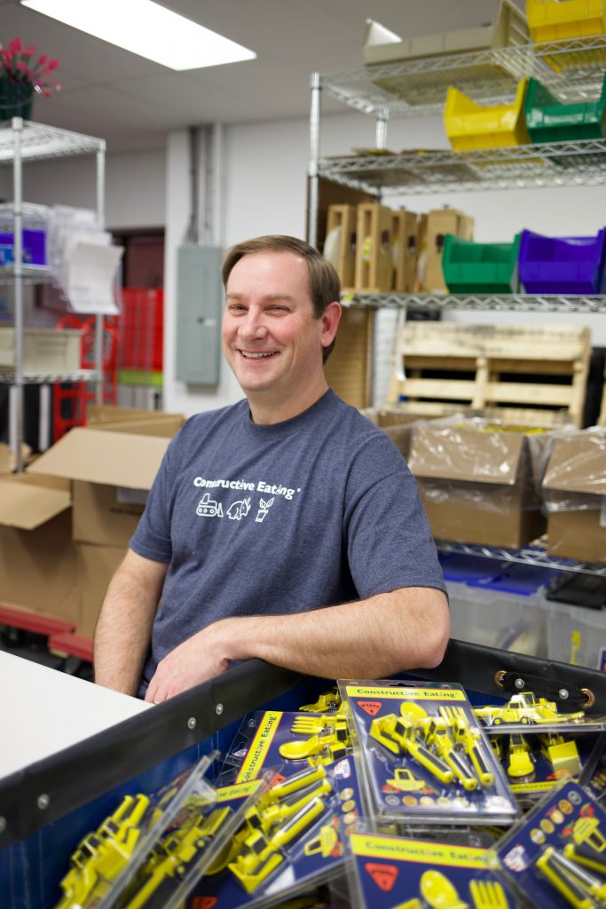 My wife, Jackie Malcolm, and I cofounded Constructive Eating in 2009. Jackie now serves as president. While raising our three children, we found that one of our sons was a very picky eater and we struggled with getting him to eat anything healthy. Our son also loved construction equipment, which gave us the idea for the Construction Line. We saw that making mealtime more fun for our kids engaged them and encouraged them to eat different foods. Many of our friends also contended with picky eaters and there didn’t seem to be any good quality products that helped solve this problem. I saw not only an opportunity for our products, but a need for them. Thanks to my engineering degree from the University of Michigan, I designed the Construction Line and began production in the basement of our home. The products were an instant success! I continued to grow the company out of our basement until I finally bought an office space in 2014. We now have four full-time employees and about 20 part-time production staff. We appeared at our first trade show in 2008, and we came to Chicago for our first Housewares Show in 2012.